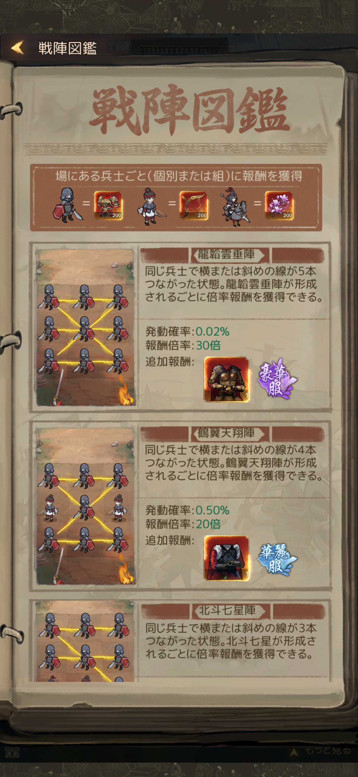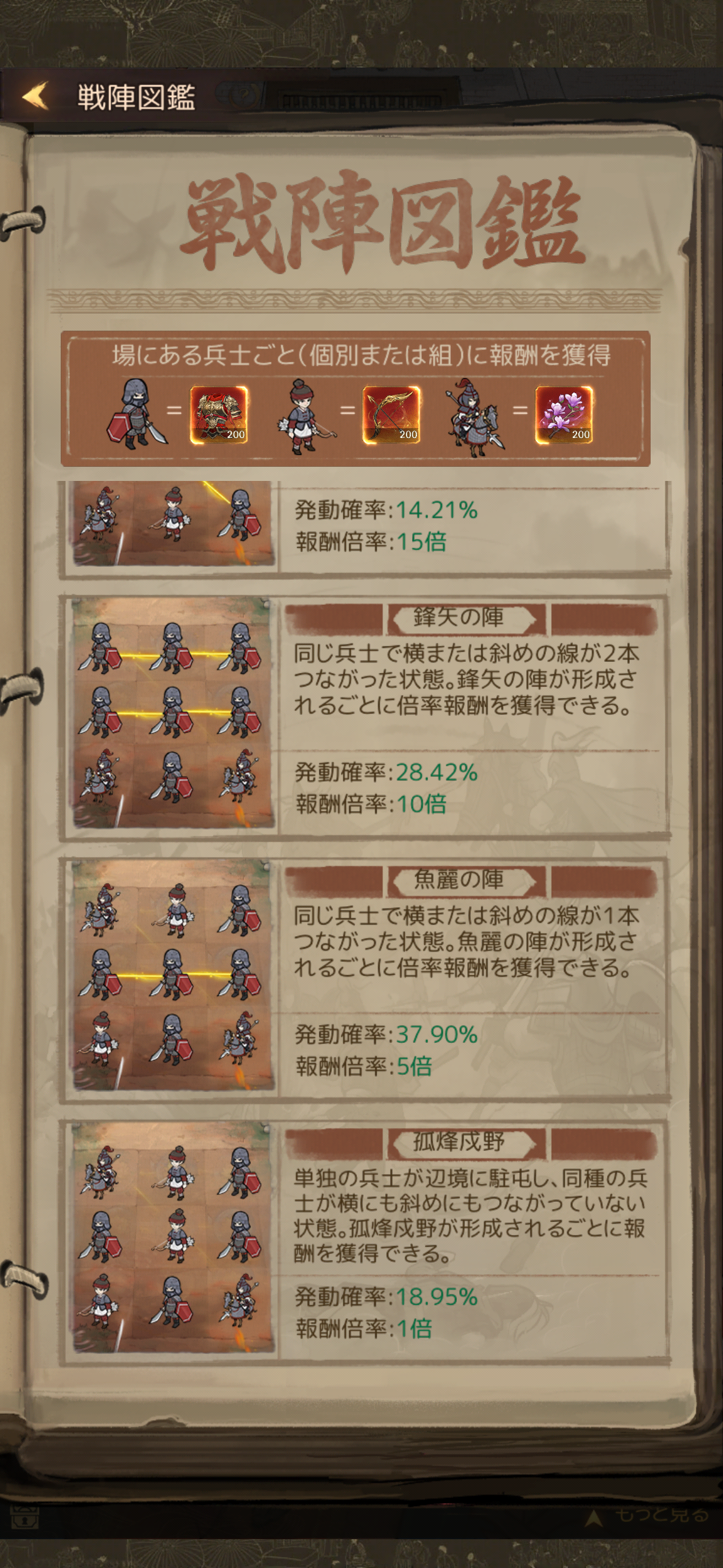 🔹3×3の9マスに出現する兵士によって報酬と数が決まります。