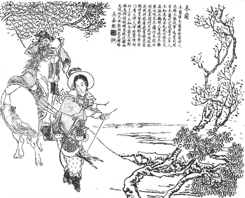 🔹木蘭詩の内容ざっくり:王が兵を募集(可汗大點兵)し、その名簿に父の名前があった。木蘭の父は年老いて従軍には耐えられない。代わりに家の男子を出そうにも幼い弟しかいない。木蘭は男装し市場で軍装を整えて父の代わりに長い戦乱に身を投じた。12年のち、褒賞の官職を断って帰宅し男装を解いて以前の服を着た。それを見た戦友はずっと男だと思っていた木蘭が女性で驚いた。