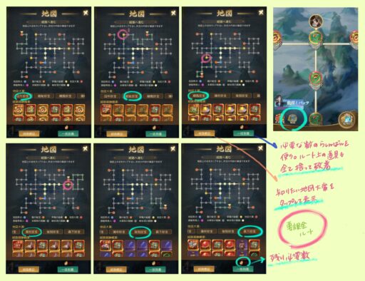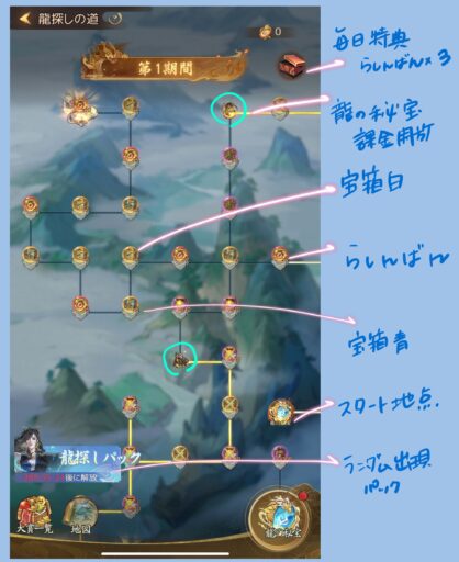 🔹ルートに並んだマス目を通り様々な道具を入手する事が出来ます。道具の中には抽選で欲しい道具が手に入る『龍の秘宝』で使用出来る物が含まれています。