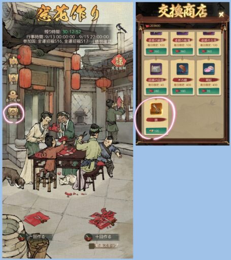 🔹決まった絵柄の組み合わせが完成すると寓意報酬(道具報酬)を入手します。一枚ずつ切ってもまとめて切っても、作成された窓花はストックされ、組み合わせが完成した時点で報酬を入手します。