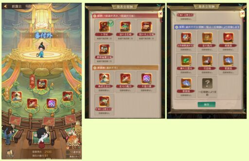 | 25.11.16 | ①狐火炎上 ②静雅幽蘭 ③卜字杖 ④溢れる宝箱 | ①鑑定読心/司棠 ②狐狼/何曦 ③相思驚鴻/沈眉荘 | 無双美女普通服 選択宝箱 |